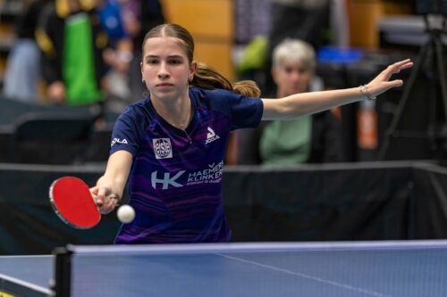 Mijn naam is Joes Slakhorst en ik ben 14 jaar. Omdat mijn 2 oudere broers Jens en Ties tafeltennis spelen, ging ik ook vaak mee naar de training. Eerst om te kijken, daarna om zelf te spelen. Ik ben begonnen met trainen bij TTV Quick ’72 in Schimmert. Al snel ging ik meer trainen en deed ik mee aan de RTN Limburg trainingen. Daarna kwamen er bondstrainingen van Yana Timina bij en ik train nu ook in de gezamenlijke senioren trainingsgroep van Quick-Kluis bij Anco. Daarnaast train ik nog 3 keer per week individueel. Dat is voor schooltijd in de zaal bij Kluis. Voor mij is het fijn om in de ochtend bij Kluis te trainen want daarna kan ik dan meteen door naar school. Ik zit op het Graaf Huyn College in Geleen. Voor de competitie speel ik op dit moment bij Never Despair in Den Bosch. Ik speel daar Landelijk B. Op de zondagen reis ik door het land om toernooien te spelen bij de jeugd of bij de Dames. Steeds vaker speel ik ook toernooien in het buitenland. In Nederland zijn er niet veel meisjes van mijn leeftijd op hetzelfde niveau. En in het buitenland is het niveau veel hoger en kan ik heel veel leren van mijn leeftijdsgenoten.