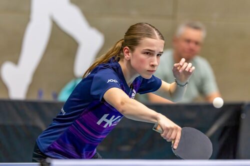 Mijn naam is Joes Slakhorst en ik ben 14 jaar. Omdat mijn 2 oudere broers Jens en Ties tafeltennis spelen, ging ik ook vaak mee naar de training. Eerst om te kijken, daarna om zelf te spelen. Ik ben begonnen met trainen bij TTV Quick ’72 in Schimmert. Al snel ging ik meer trainen en deed ik mee aan de RTN Limburg trainingen. Daarna kwamen er bondstrainingen van Yana Timina bij en ik train nu ook in de gezamenlijke senioren trainingsgroep van Quick-Kluis bij Anco. Daarnaast train ik nog 3 keer per week individueel. Dat is voor schooltijd in de zaal bij Kluis. Voor mij is het fijn om in de ochtend bij Kluis te trainen want daarna kan ik dan meteen door naar school. Ik zit op het Graaf Huyn College in Geleen. Voor de competitie speel ik op dit moment bij Never Despair in Den Bosch. Ik speel daar Landelijk B. Op de zondagen reis ik door het land om toernooien te spelen bij de jeugd of bij de Dames. Steeds vaker speel ik ook toernooien in het buitenland. In Nederland zijn er niet veel meisjes van mijn leeftijd op hetzelfde niveau. En in het buitenland is het niveau veel hoger en kan ik heel veel leren van mijn leeftijdsgenoten.